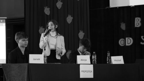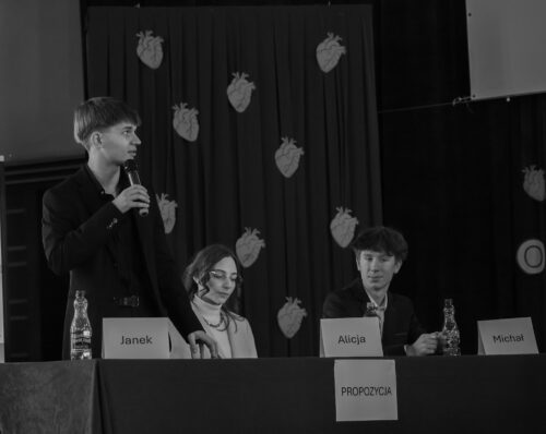 W drugiej części spotkania młodzież przeprowadziła debatę oksfordzką na temat „Granice medycyny są granicami etyki”. Temat bardzo trudny, ale przygotowana argumentacja była na bardzo wysokim poziomie.