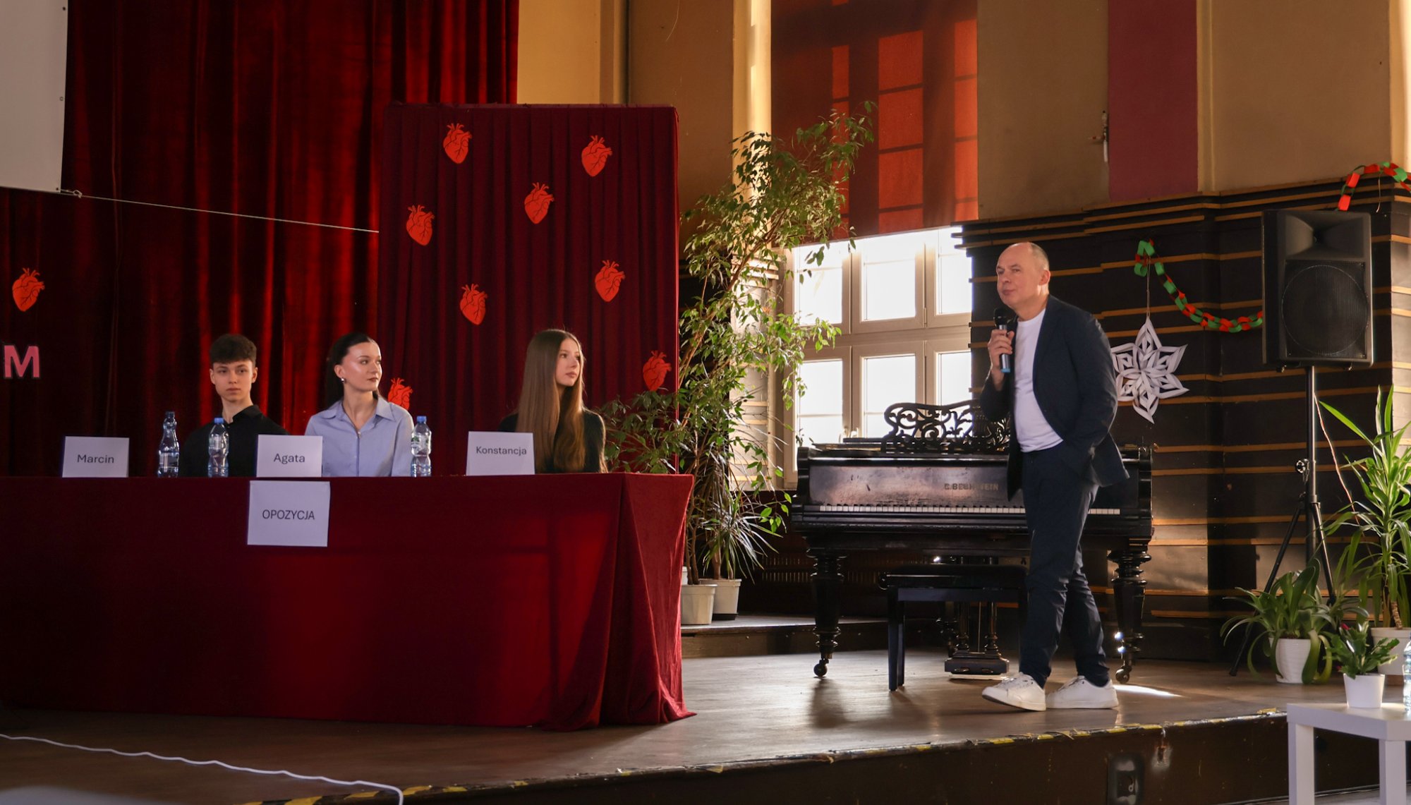 W drugiej części spotkania młodzież przeprowadziła debatę oksfordzką na temat „Granice medycyny są granicami etyki”. Temat bardzo trudny, ale przygotowana argumentacja była na bardzo wysokim poziomie.