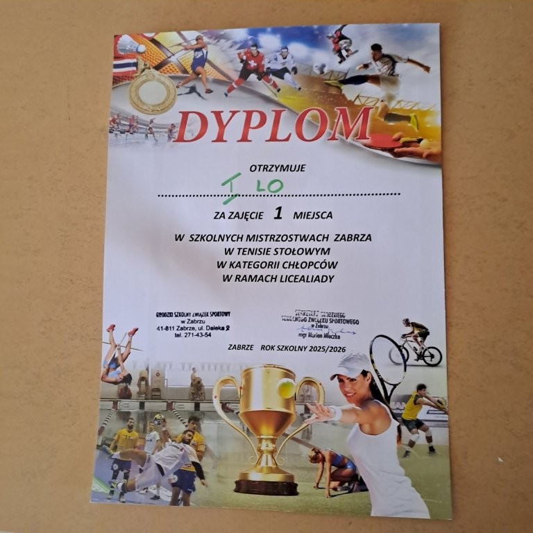 Dobra passa nas nie opuszcza. W Mistrzostwach Zabrza w Tenisie Stołowym nasi chłopcy zajęli I miejsce w składzie: Jakub Wójcicki, Filip Sadło, Andre Markiewicz. Dziewczyny wywalczyły II miejsce w składzie: Amelia Golemiec, Hanna Patera, Maria Pyrda. Uczniów przygotował nauczyciel wychowania fizycznego mgr Roman Stempski. Dzięki jego pasji, całorocznej pracy i organizacji Szkolnej Ligi Tenisa Stołowego można było wyłonić najlepszych zawodników.