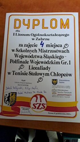 Sukces w zawodach tenisa stołowego Opublikowano 28 października 2025 Nasi chłopcy Jakub Wójcicki, Filip Sadło i Adre Markiewicz zakończyli zmagania w zawodach tenisa stołowego zajmując bardzo wysokie 4 miejsce w półfinale województwa śląskiego. Gratulujemy i życzymy dalszych sukcesów.